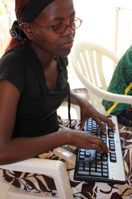 The first day of my computer lessons was interesting considering the fact that the electricity was out. The six desktop computers set up in our living room were not of great use. I managed to teach a computer lesson on the porch. We brought out keyboards for everyone and a CPU to point to. We talked about the keyboard itself and about the different devices that can be connected to a CPU and how to connect them. I think they all enjoyed the lesson, but were also excited that the power was back on the next day and they got to use their computers. We have enough computers where each computer is shared by 2 students. I have already seen improvement in their computer and typing skills. It is really fun to be apart of teaching something they are so excited about.